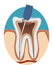 むし歯菌に感染した神経や血管内部の汚染箇所を除去し、根管を拡大します。